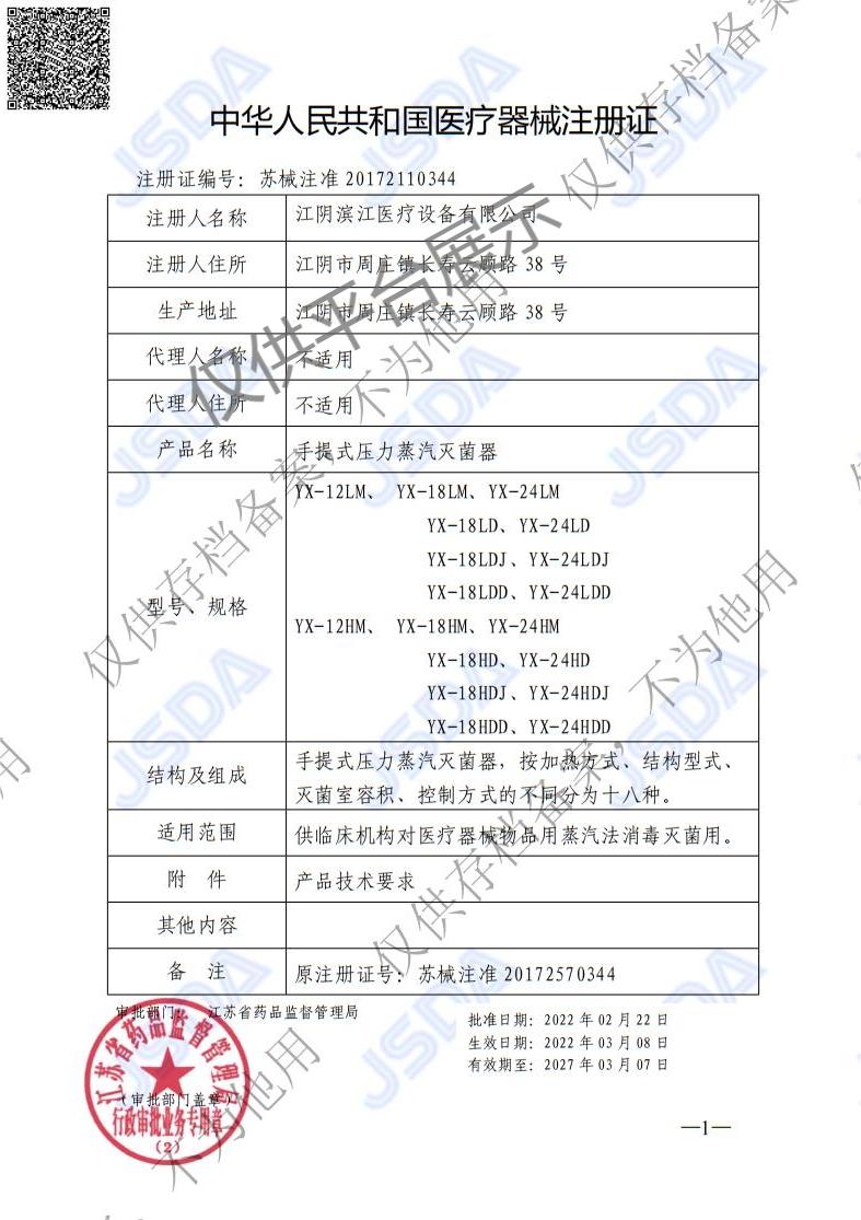 產(chǎn)品名稱(chēng) : 濱江醫(yī)療高壓手提式滅菌器YX-18LD