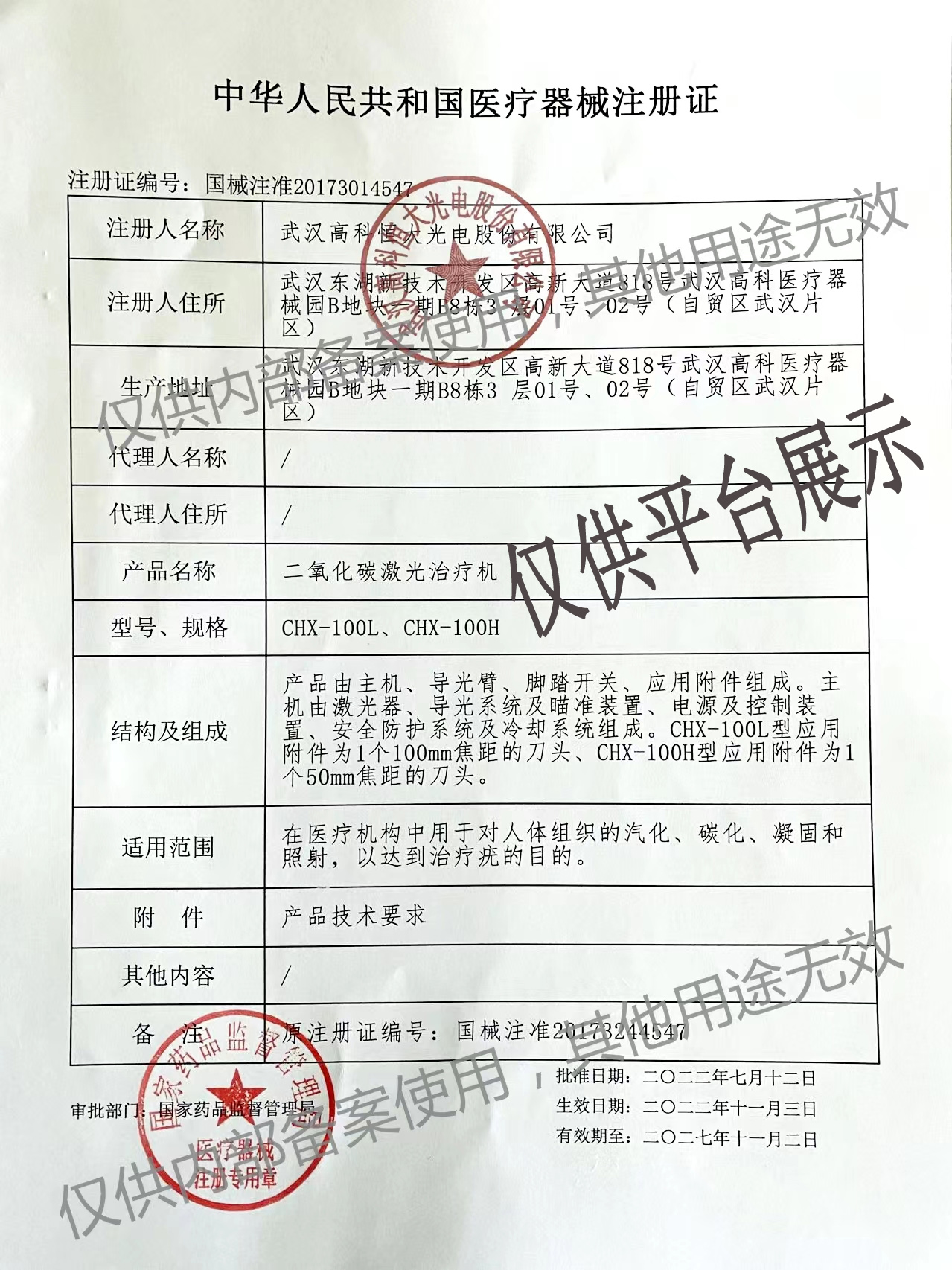 醫(yī)械網(wǎng)是一家提供高科恒大CHX-100L型二氧化碳激光治療機(jī)(連續(xù)激光)價格、參數(shù)介紹等信息的展示平臺,為您提供優(yōu)質(zhì)的高科恒大CHX-100L型二氧化碳激光治療機(jī)(連續(xù)激光)產(chǎn)品,上海晚成醫(yī)療器械有限公司專注于各類醫(yī)療器械批發(fā)及零售,聯(lián)系電話:400-006-1850。
