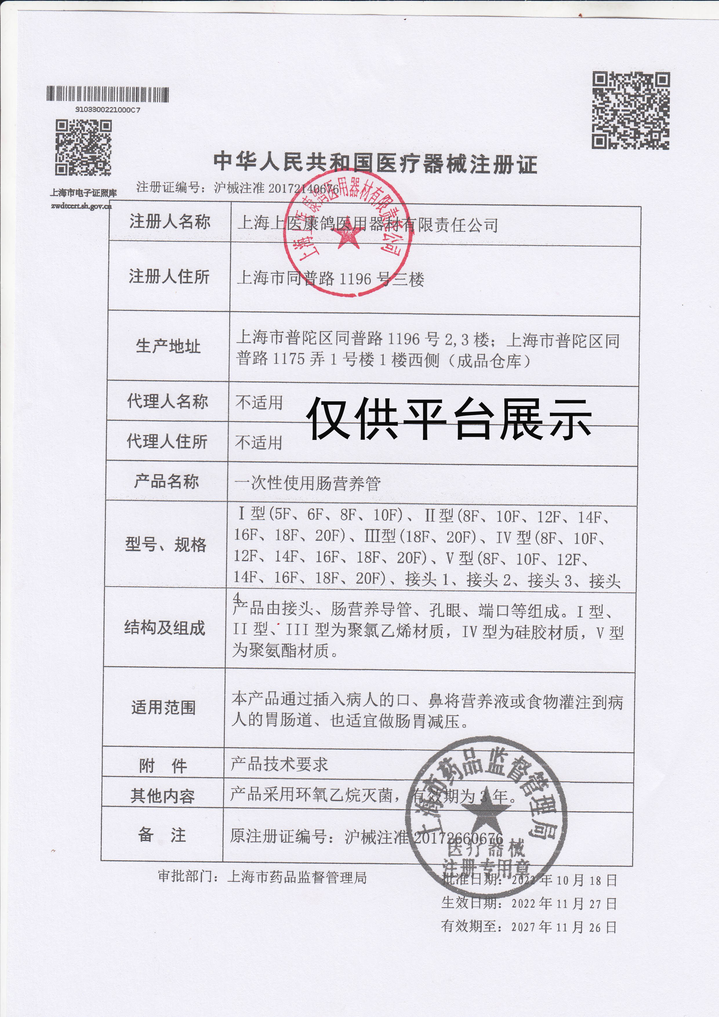 產(chǎn)品名稱 : 康鴿營養(yǎng)管(胃管)